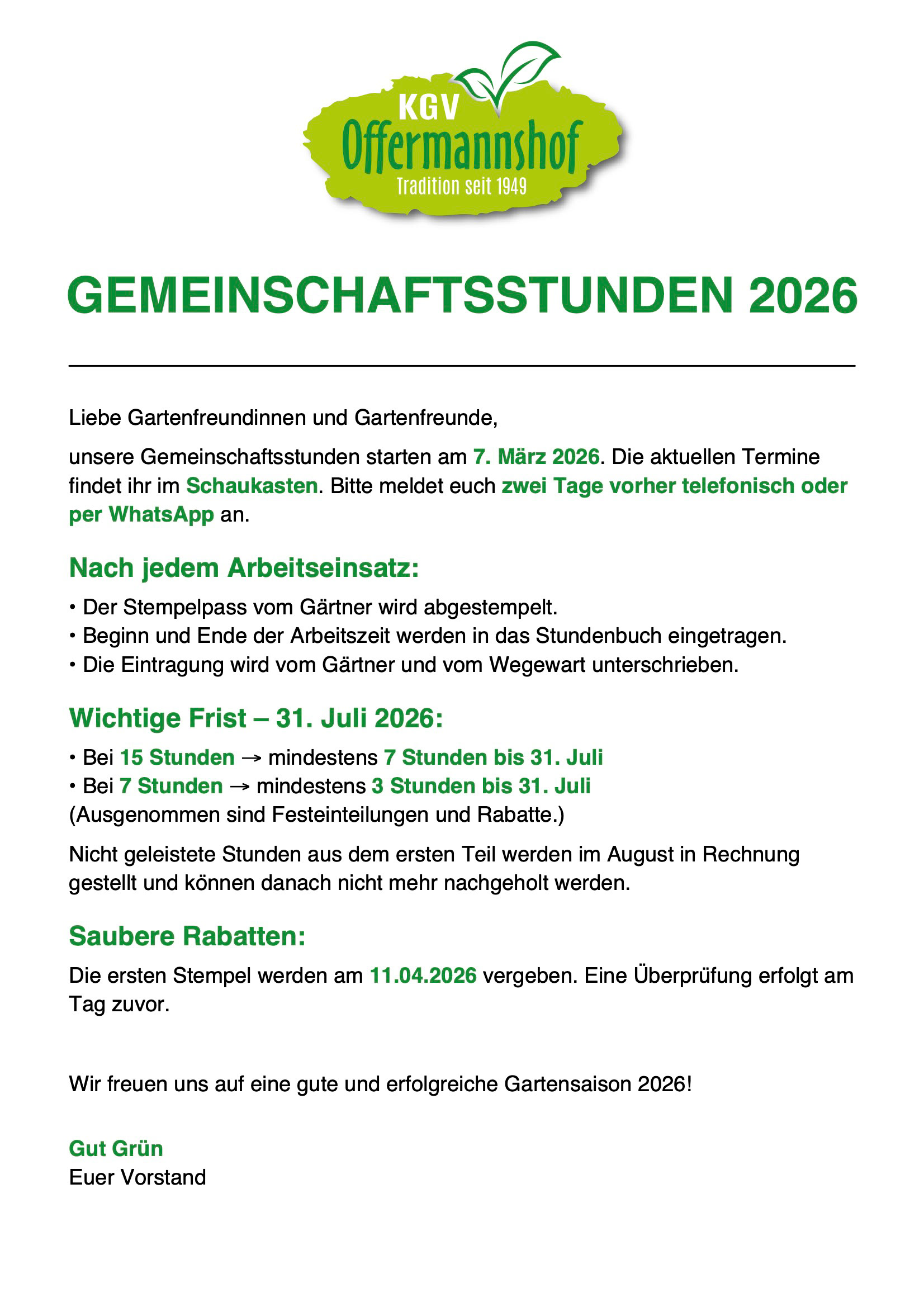 Nun wünschen wir Ihnen einen schönen Aufenthalt im Kleingartenverein Offermannshof.