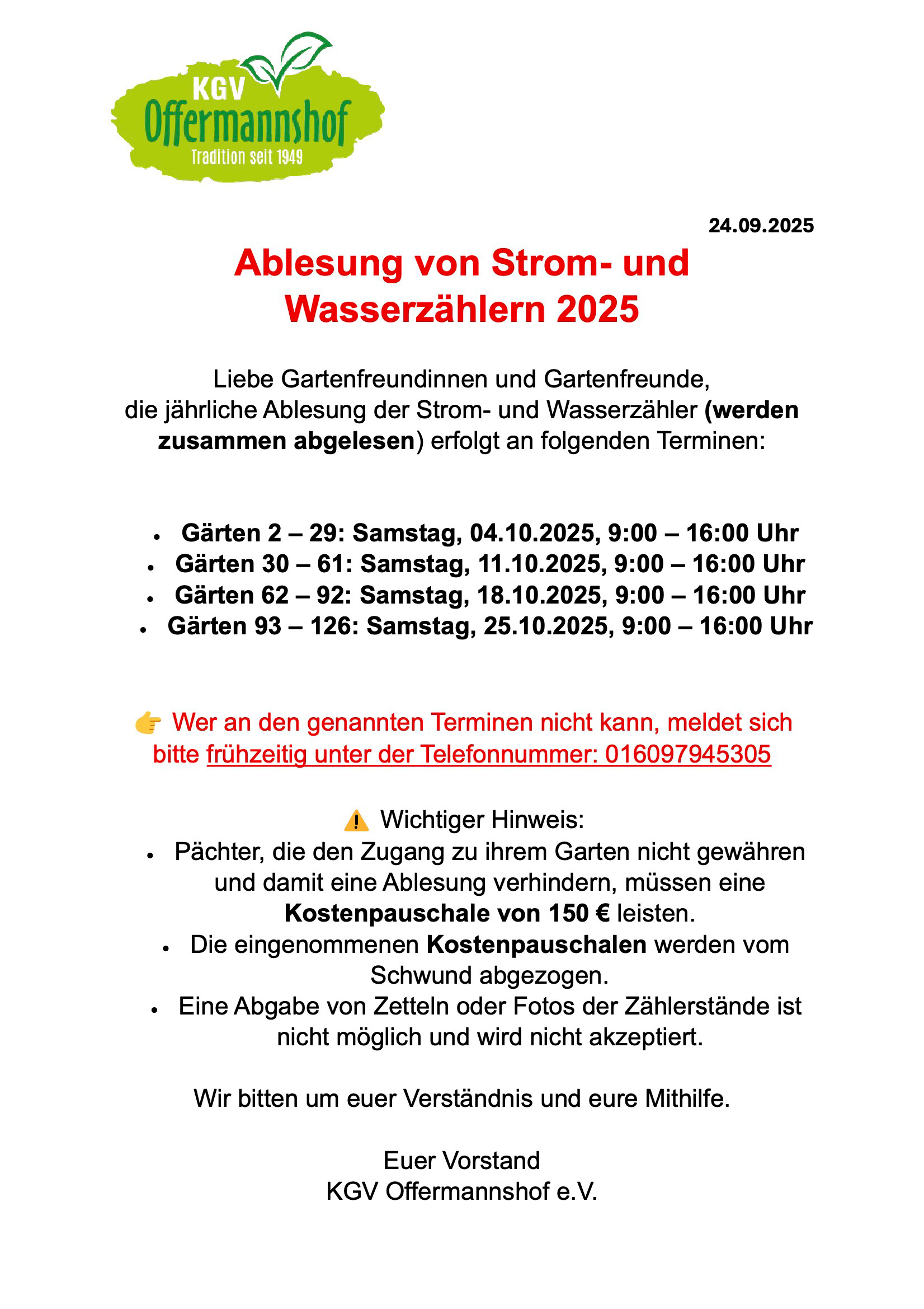 Nun wünschen wir Ihnen einen schönen Aufenthalt im Kleingartenverein Offermannshof.